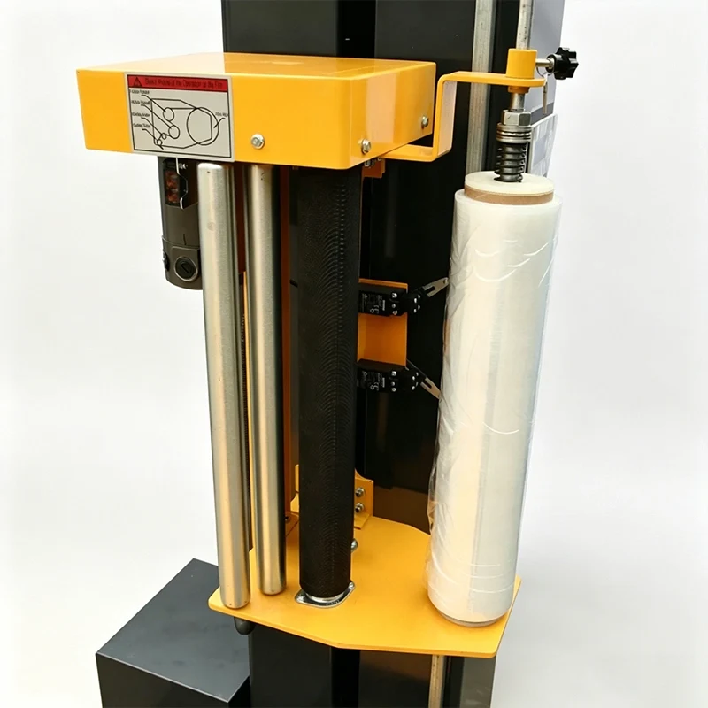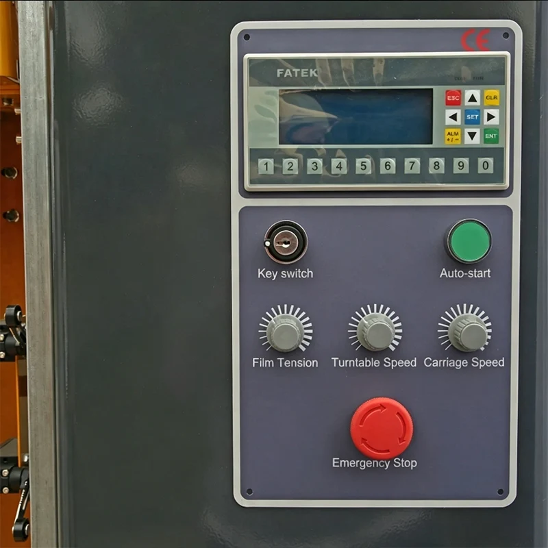 The machine features automatic film cutting, clamping, and lifting functions, which greatly reduce labor intensity and improve packing efficiency. With PLC control and user-friendly operation panel, it is easy to set wrapping cycles, film tension, and height.