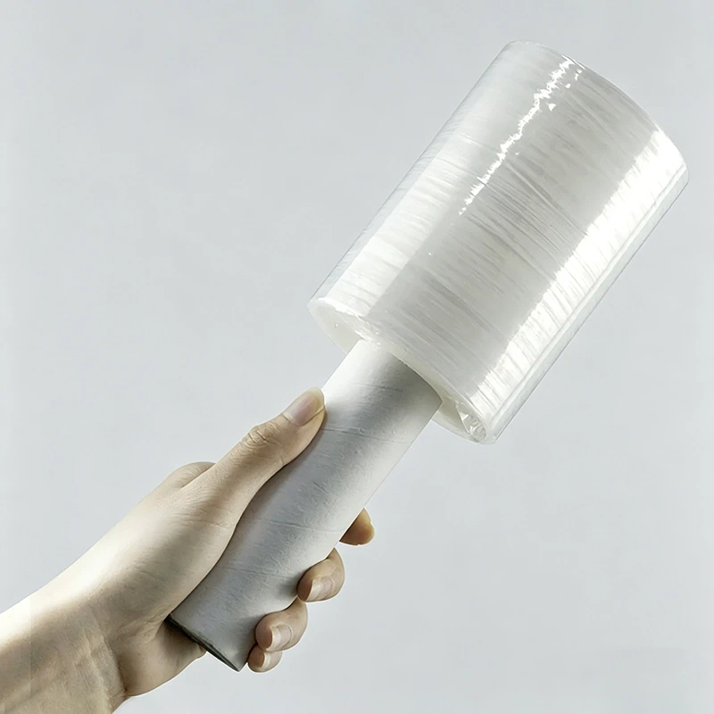 Our hand stretch film with integrated paper handle is designed to simplify manual pallet wrapping, bundling, and load securing for warehouses, logistics centers, retail businesses, and moving companies. Made of high-quality polyethylene (PE) material, this clear stretch wrap offers excellent elasticity, tear resistance, and self-adhesion, ensuring your goods stay tightly bound and protected during transit, storage, or handling. The built-in paper handle eliminates the need for separate dispensers, making it ideal for quick, on-the-go packaging tasks.